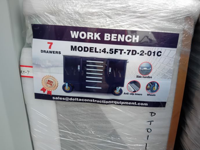 Unued 4.5ft Workbench, 7 Drawers & 2 Cabinets
